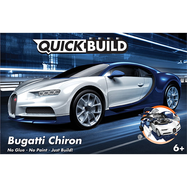 What is QUICK BUILD?Airfix QUICKBUILD is an exciting range of brick-based models suitable as an introduction to modelling for any age of 6 and up. The pre-coloured pieces simply push together to build an impressive model which can then be decorated with the included self-adhesive stickers. No paint or glue is needed to make these fantastic models look like the real thing, and once completed theres no evidence of any of the brick fittings showing. When built they are tough enough to be used as toys, or smart enough to use as display models. Either will show off those great modelling skills!Included with each model are a full set of easy-to-follow colour instructions, free-rolling wheels for cars and tanks, and display stands for all the aircraft. Bugatti Chiron The CHIRON is the fastest, most powerful, and exclusive production super sports car in BUGATTIs history. Its sophisticated design, innovative technology, and iconic, performance-oriented form make it a unique masterpiece of art, form and technique, that pushes boundaries beyond imagination. Build this ultimate in supercar design in 44 pieces.Trademarks design patents and copyrights are used with the approval of the owner and/or exclusive licensee Bugatti International SA.