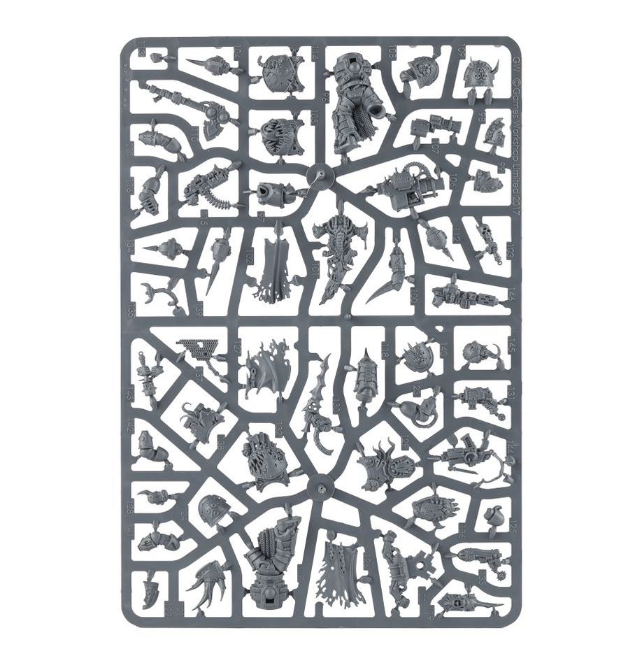 The Death Guard are the greatest champions of the Plague God, Grandfather Nurgle, his favoured spreaders of his bounteous gifts. Look upon them and see the signs: pus seeping from festering wounds that never heal; miasmic smogs of corrosive, stinking gas hanging thickly in the air wherever Nurgle’s chosen tread; the wriggling, lamprey-mouthed tick-leeches that clamp on to their rotting flesh; the droning billions of plague flies that swarm the battlefields they stalk and the ships in which they course through the stars.
