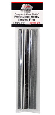 Looking for the very best hobby sanding files to make that perfect project? Look no further! Alpha Precision Abrasives professional hobby sanding files are suitable for the aspiring and professional modellers wanting the perfect assortment of tools to make the best models possible. Available in various grit strengths and an assortment of sizes, we are certain you will find a sanding file to meet your modelling needs.