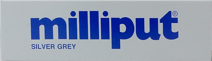 Milliput is a two-part, cold setting, non shrinking epoxy putty sold in cartons containing 113.4gm. One 56.7gm stick of each part. We produce five grades of Milliput: Standard (Yellow/Grey), Terracotta, Silver Grey, Black and Superfine White.