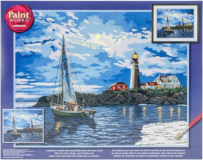 - Capture a beautiful evening with a sailboat and a lighthouse with our wonderful paint by numbers kit.