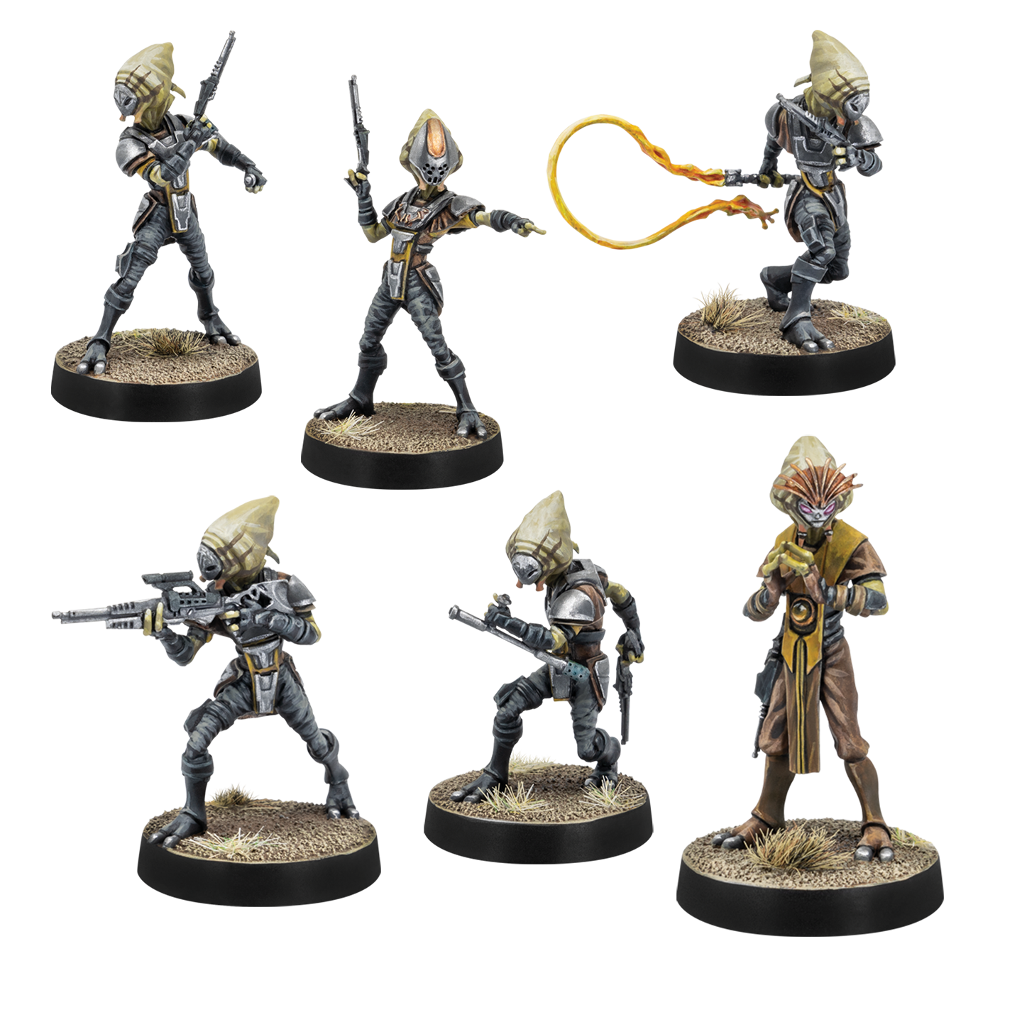 This expansion for Star Wars: Legion contains 6 finely sculpted Pyke Syndicate Foot Soldier miniatures and 1 Pyke Syndicate Capo miniature, enough for 1 Corps Unit and 1 Commander Unit, along with new Unit and Upgrade cards to field in battle.