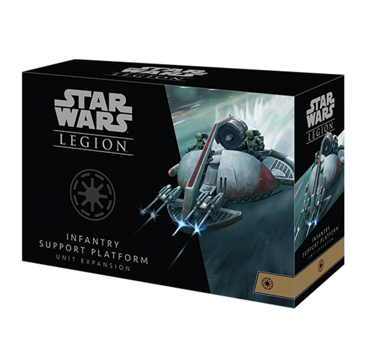 An immense rear-mounted turbofan and powerful repulsors make the Infantry Support Platform a true all-terrain vehicle. With armaments that allow it to punch significantly above its weight, its paired pilots can direct each weapon individually or link them together to take on larger prey. This expansion for Star Wars: Legion contains 1 finely sculpted Infantry Support Platform miniature, enough for 1 Heavy Unit, along with new Unit and Upgrade cards to field in battle.